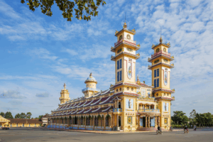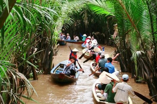 After breakfast, drive to My Tho. Visit Vinh Trang pagoda. Then take a boat trip on Mekong River that covers areas of My Tho fish-farm and 4 islands of Dragon, Unicorn, Turtle and Phoenix. Explore Dua Religion relics and manufacture of handicraft made from coconut trees. Continue to Thoi Son island. On arrival, visit traditional rice paper and coconut candy factory, walking along the rural village for visiting local house, where you can enjoy taste of seasonal fresh fruits, honey tea with many kinds of jams while enjoy Southern traditional music show “Don Ca Tai Tu” – the lovely and romantic melody of one of local artists in Mekong Delta. Rowing on sampans along the canals of Mekong River covered with shady water coconut trees. Return to Ho Chi Minh City in the afternoon. Accommodation at hotel in Saigon.